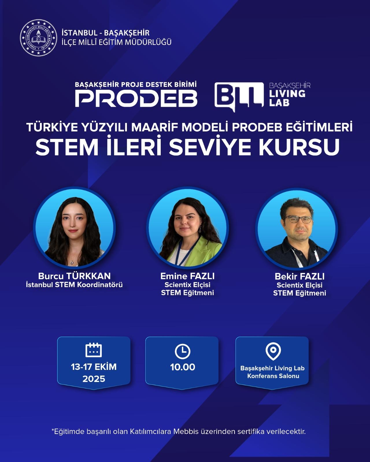 STEM (Fen, Teknoloji, Mühendislik ve Matematik) yaklaşımına yönelik İleri Seviye Kursu, daha önce temel seviye eğitimini tamamlayan öğretmenlerimizin bilgi ve becerilerini geliştirmek amacıyla düzenlenmektedir. Eğitim süresince katılımcılar, disiplinler arası senaryo yazımı, dijital araç kullanımı ve Arduino tabanlı etkinliklerle STEM uygulamalarını derinleştirme fırsatı bulacaktır.
